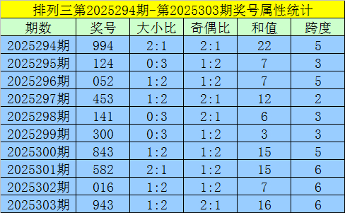 上期转头:陈列三第2025303期出现奖号943。开出组六,奇偶比2:1,012路比2:1:0辽宁征途网络科技有限公司,大小比1:2,和值16,跨度6。